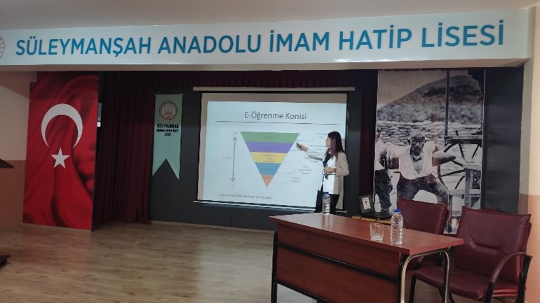 Eğitimin bu oturumunda Yalova Üniversitesi Uzaktan Eğitim Uygulama ve Araştırma Merkezi Öğretim Görevlisi Esra İşgör Şimşek, katılımcılara "Uzaktan Eğitim ve E-Öğrenme" konularında kapsamlı bilgiler sundu. Eğitime Yalova Üniversitesi UZEM Müdürü Öğr. Gör. Muhammed Abdullah Gül, Süleymanşah Anadolu İmam Hatip Lisesi Okul Müdürü Cüneyt Vardar, öğretmenler ve öğrenciler katılım sağladı.